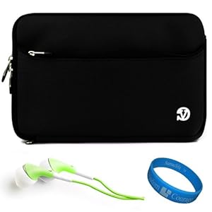 Keep your Acer Iconia Tab A200 Tablet protected on the go with this sleek neoprene sleeve that features a fitted design for a snug, secure fit and a soft, cushioned interior that helps keep your Acer Iconia Tab A200 safe from the elements. The SumacLife sleeve features an exterior zippered pocket that allows you to carry accessories such as chargers, data cables, and memory cards along-side your tablet for convenience on the GO! You'll be impressed with not only the quality but the style and design of our SumacLife Neoprene Sleeve. (External Dimension: (L) 11.7 x (W) 7 inches) + INCLUDES! SumacLife TM Wisdom Courage Wristband + INCLUDES! Green Hifi-Noise Reducing Earbuds. These earbuds have been Engineered to have quality sound with enhanced bass. Features Noise-isolating ear tips to provide a perfect fit and seal out ambient noise. Features Low mass, wide bandwidth driver for precision response. The Metal housing eliminates vibration for pure sound